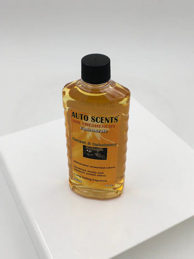 Auto Scents Air Freshener Concentrate makes up to two gallons of powerful long lasting fragrance spray. Removes stale or musty odors and improves air quality in vehicles, recreational vehicles, offices and homes. Useful in full-service car washes, detail shops, new car dealerships, used car dealers, RV dealerships and rental car agencies.