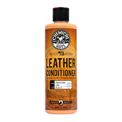 Leather Conditioner nourishes naturally tanned leather hides and synthetic materials, preventing them from drying out, cracking, and fading from the wear and tear of regular use. It also protects from UV rays that can deteriorate the leather over time. Leather Conditioner replenishes essential nutrients like Vitamin E that are regularly depleted by harsh elements like the sun. Regular use of the Chemical Guys Leather Cleaner & Conditioner Complete Kit keeps leather looking clean, feeling silky smooth, and soft and supple to resist cracking and breaking prematurely.