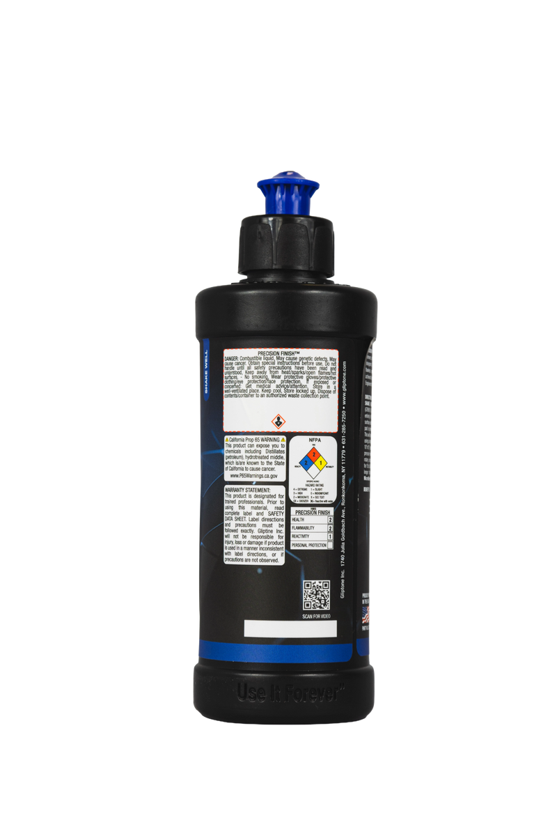 Nano Ceramic Abrasive Technology Precision Finish contains no fillers and effectively removes, not hides, micro-fine scratches, swirls, and holograms. The perfect paint correction finishes step to produce flawless perfection and paint clarity. For use with foam or microfiber pads and DA polisher. Also very effective with rotary at low speed with finishing foam.