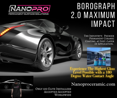 The Industry's premier Graphene Oxide and Boron Silicate infused formula. Thanks to technology improvements, BOROGRAPH 2.0 WILL BE A PERMANENT COATING.