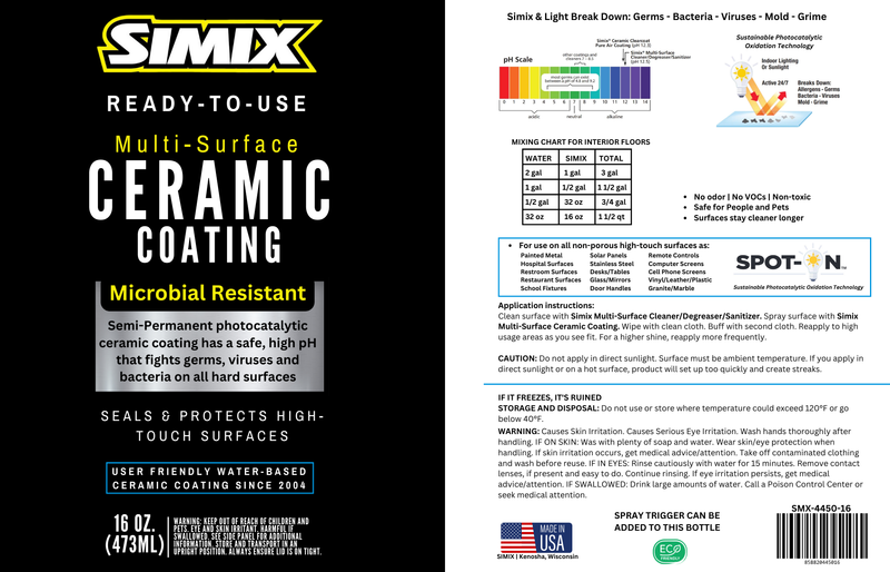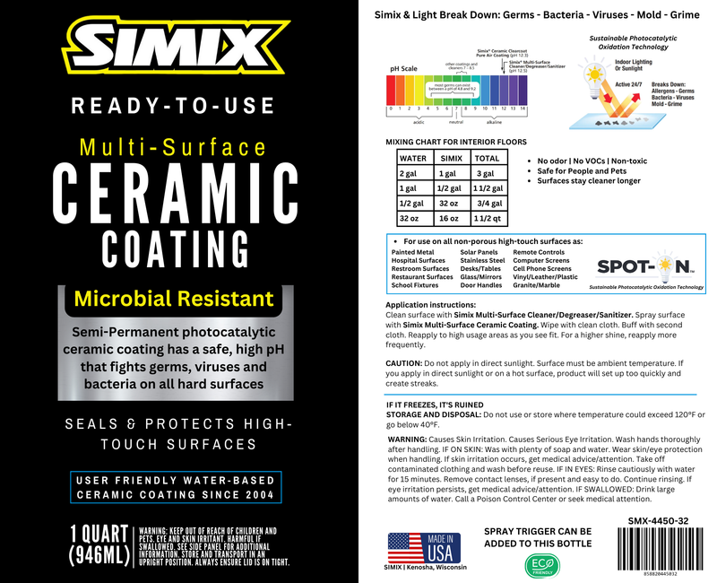 - Coating has a permanent, safe, high pH that kills Coronaviruses, kills germs, and kills bacteria on surfaces