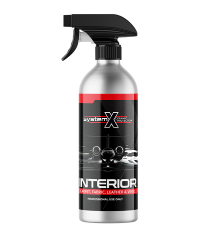 System X Interior creates a high-tech super hydrophobic coating based on advanced nanotechnology to protect your interior surfaces like fabric seats, carpet, leather, and vinyl - with a single professional coating product. Spills and stains clean up easily and quickly.